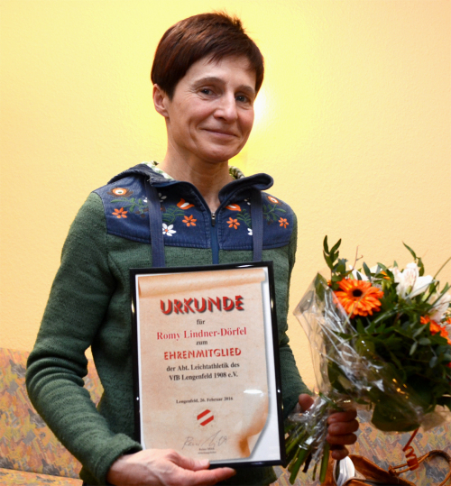 Im Verlauf der Veranstaltung wurde Romy Lindner-Dörfel auf Grund ihrer sportlichen Leistungen (Deutsche Meisterin Marathon 1996, Silbermedaille mit der Deutschen Nationalmannschaft im Berglauf 2000, dreimal Siegerin des Marathons beim Rennsteiglauf) zum Ehrenmitglied der Abteilung ernannt. Romy's Leistungen wurden auch ausführlich in einem Artikel der Freien Presse gewürdigt.